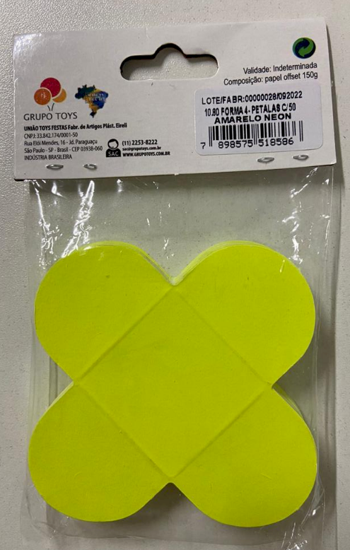 4115 - FORMA 4 PETALAS AMARELO NEON C/50un - NC TOYS