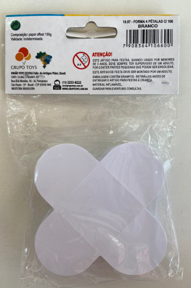 3343 - FORMA 4 PETALAS BRANCA C/100un - NC TOYS