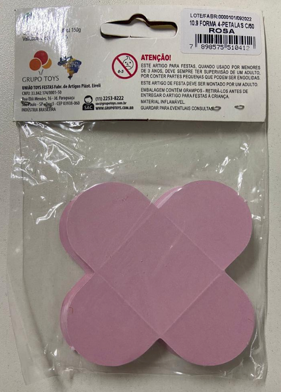 2537 - FORMA 4 PETALAS ROSA C/50un - NC TOYS