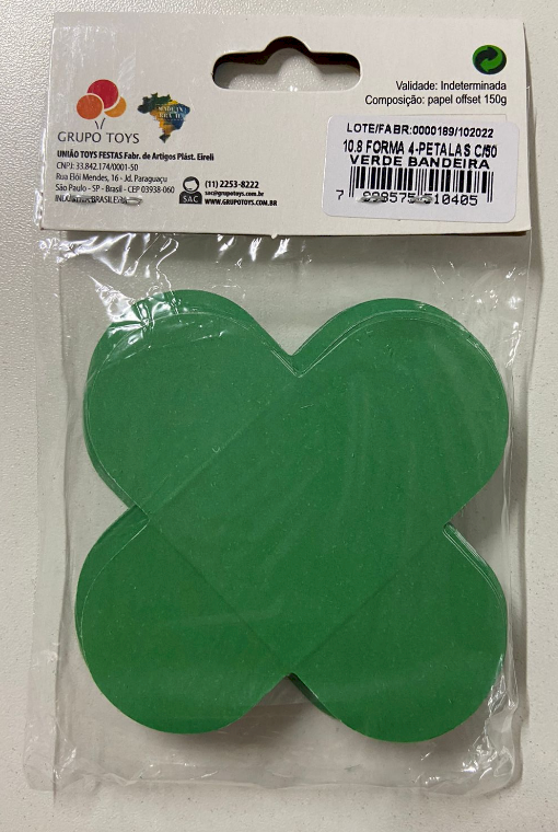2539 - FORMA 4 PETALAS VERDE BANDEIRA C/50un - NC TOYS