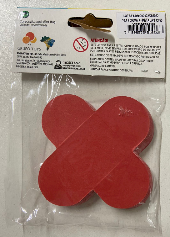 2540 - FORMA 4 PETALAS VERMELHO C/50un - NC TOYS