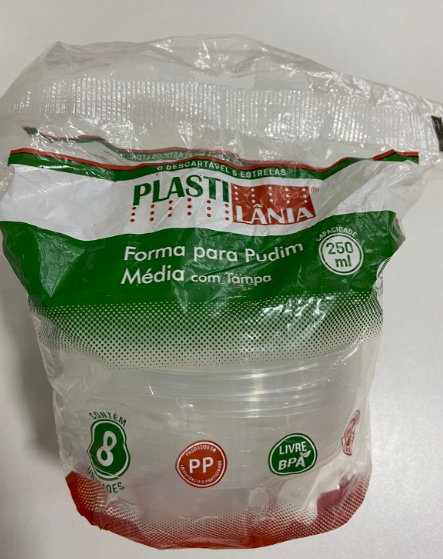 488 - FORMA PUDIM MEDIA 250ml C/ TAMPA C/ 8un - PLASTILANIA