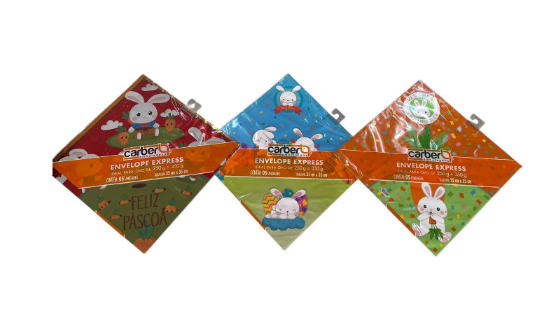 2345 - ENVELOPE P/ OVO 250g a 350g SORTIDO 35x35cm C/5un - PC/CROMUS