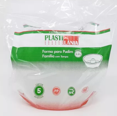 2036 - FORMA PUDIM FAMILIA 1,100L C/ TAMPA C/ 5un - PLASTILANIA