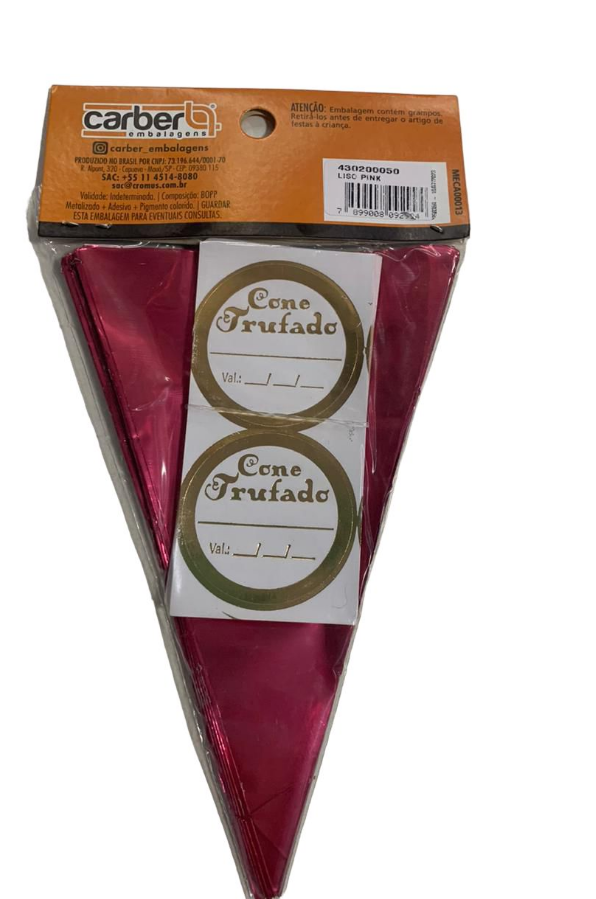 5287 - SACO CONE TRUFADO LISO PINK 10x15cm C/50un - PC/CROMUS